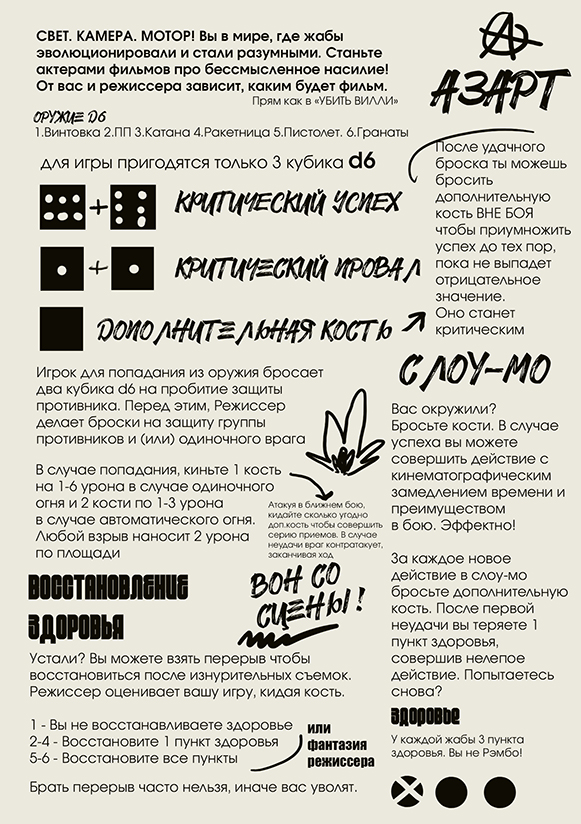 Маленькая игра про жаб, которые снимаются в боевиках. Вы актеры, а мастер займет кресло режиссера. Что из этого получится?